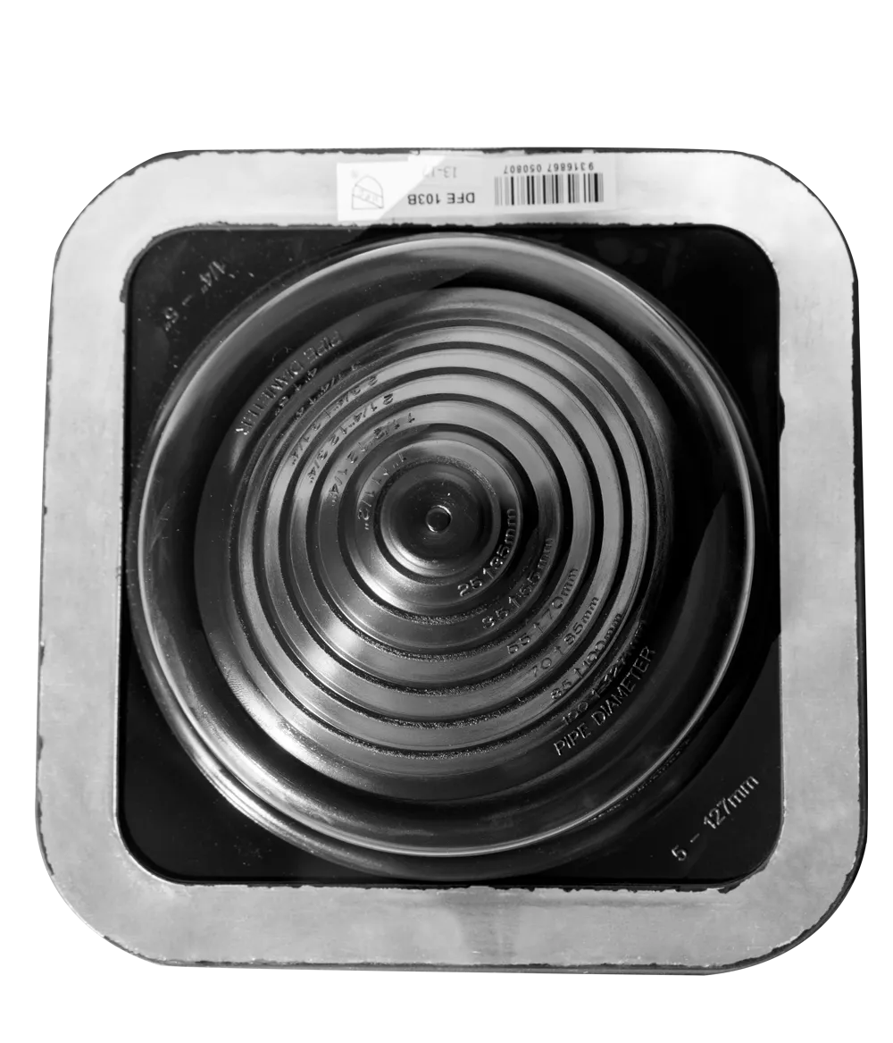 •Can also be used to flash square penetrations. Just add 30% to the pipe diameter and trim the cone to suit.