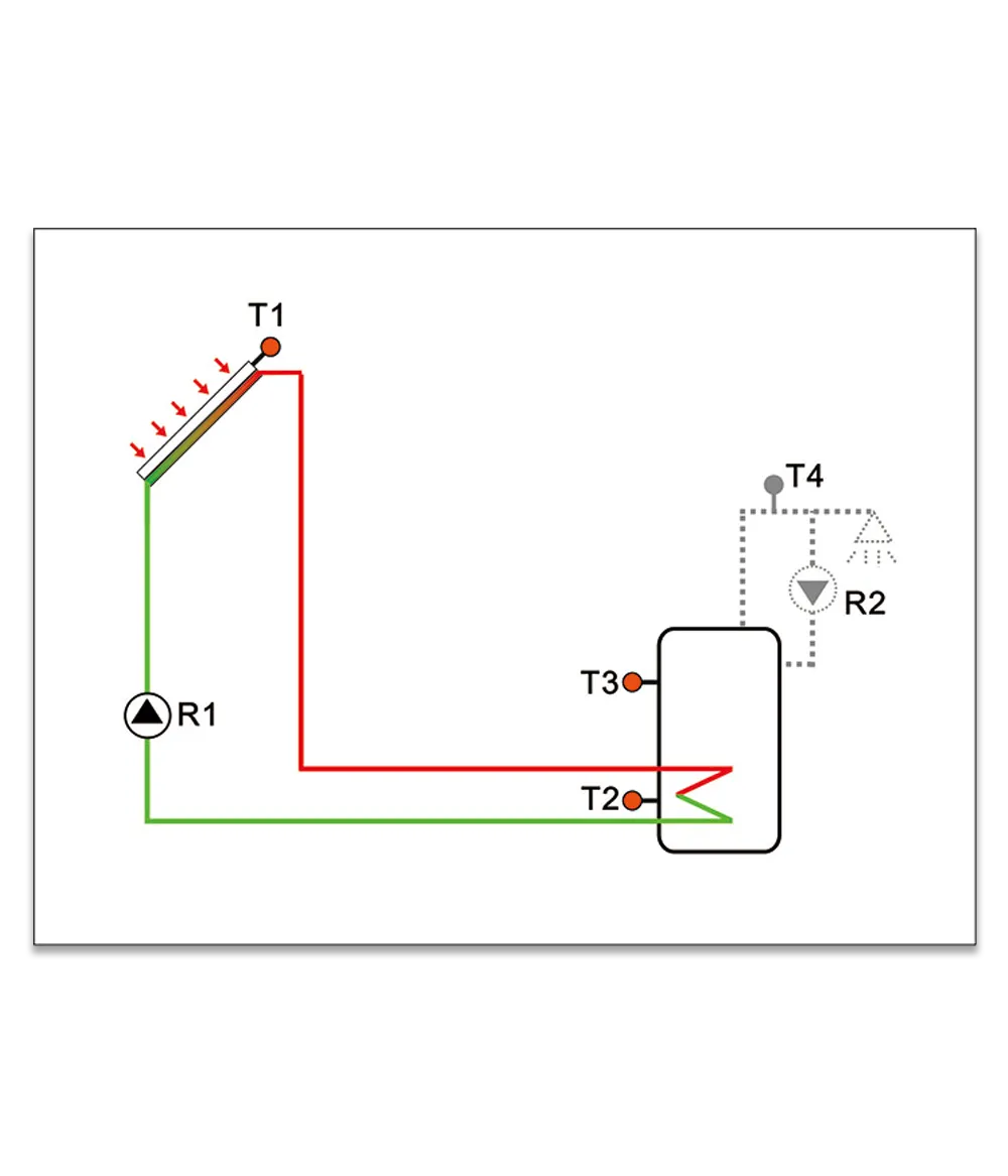 The ICE258W is a wifi controller designed for solar thermal systems, supporting a single collector and storage tank. With a temperature measurement accuracy of ±0.1°C, support for both conventional and high-efficiency (HE) pumps, and intuitive operation via 6 buttons, it provides precise control for circulation pumps and backup heating systems.